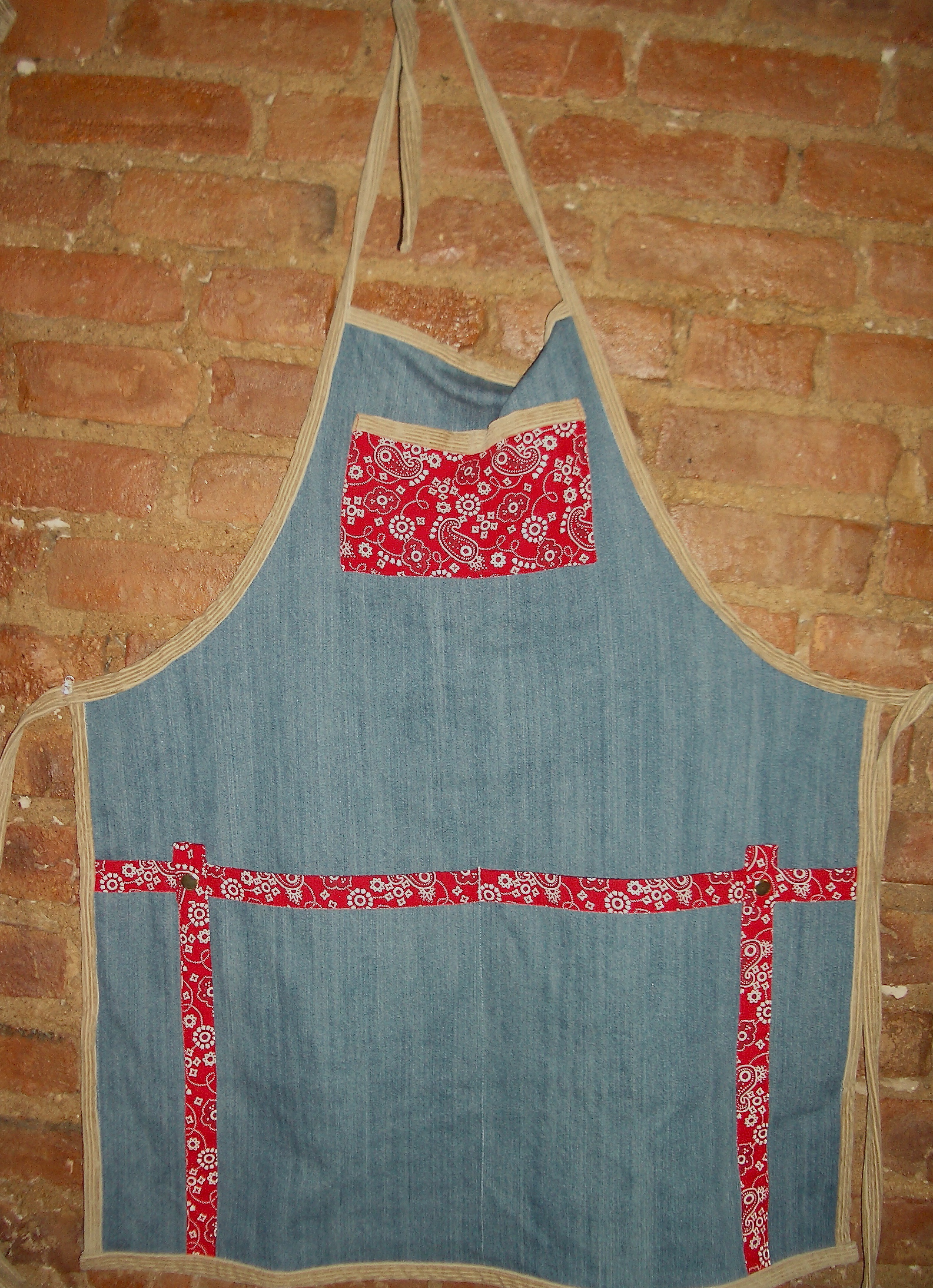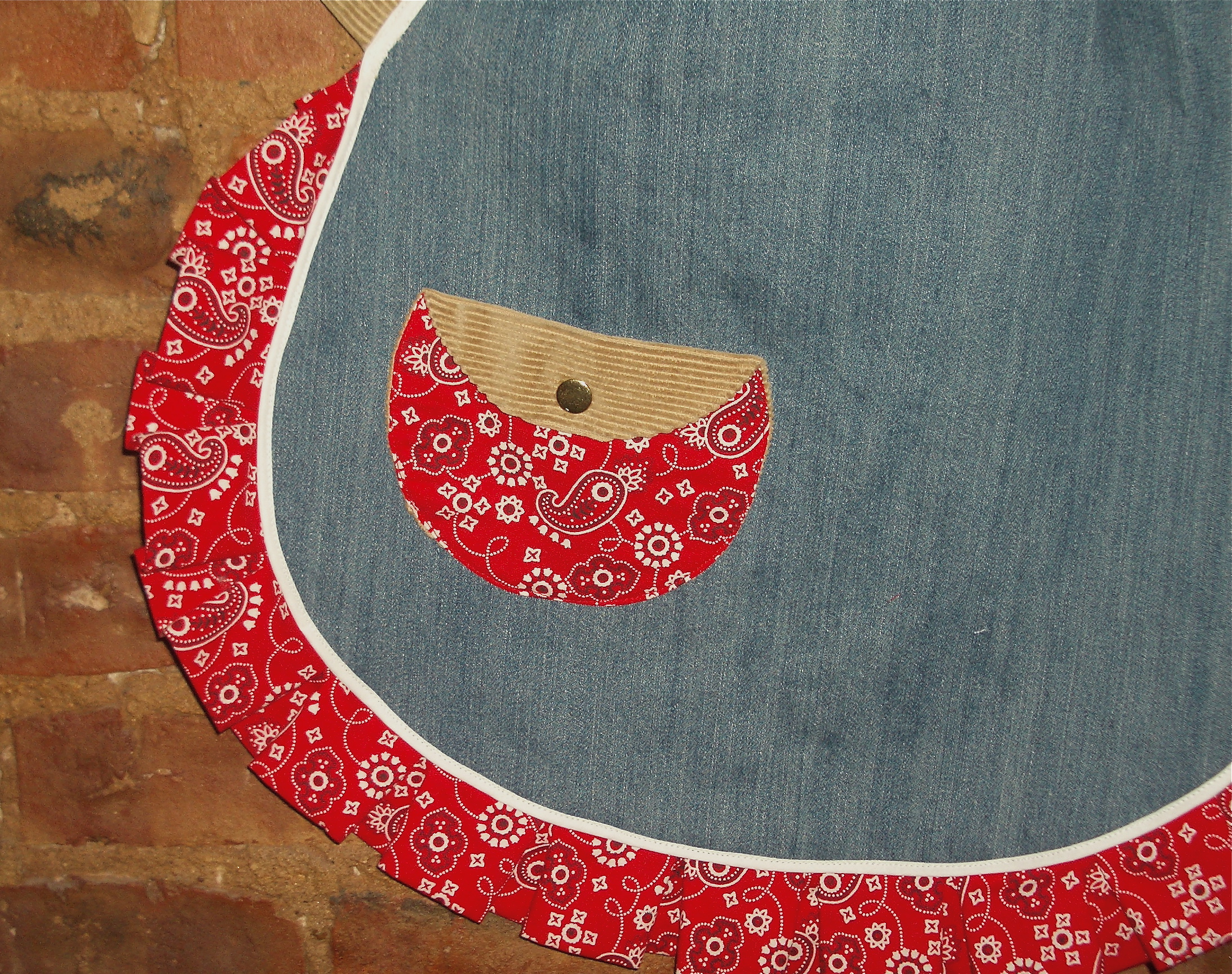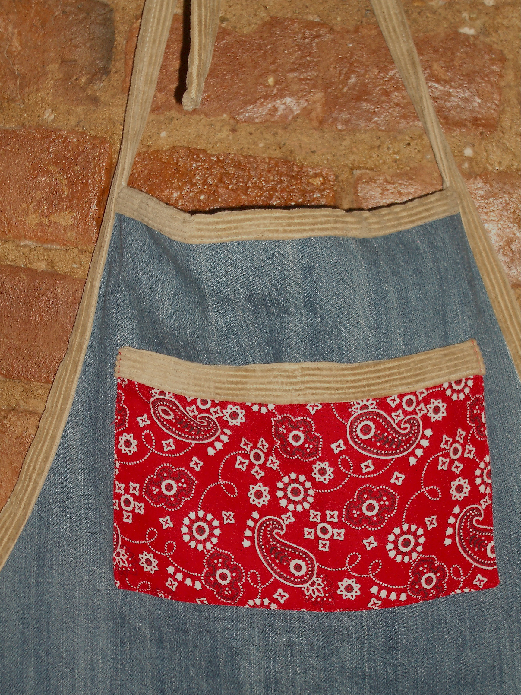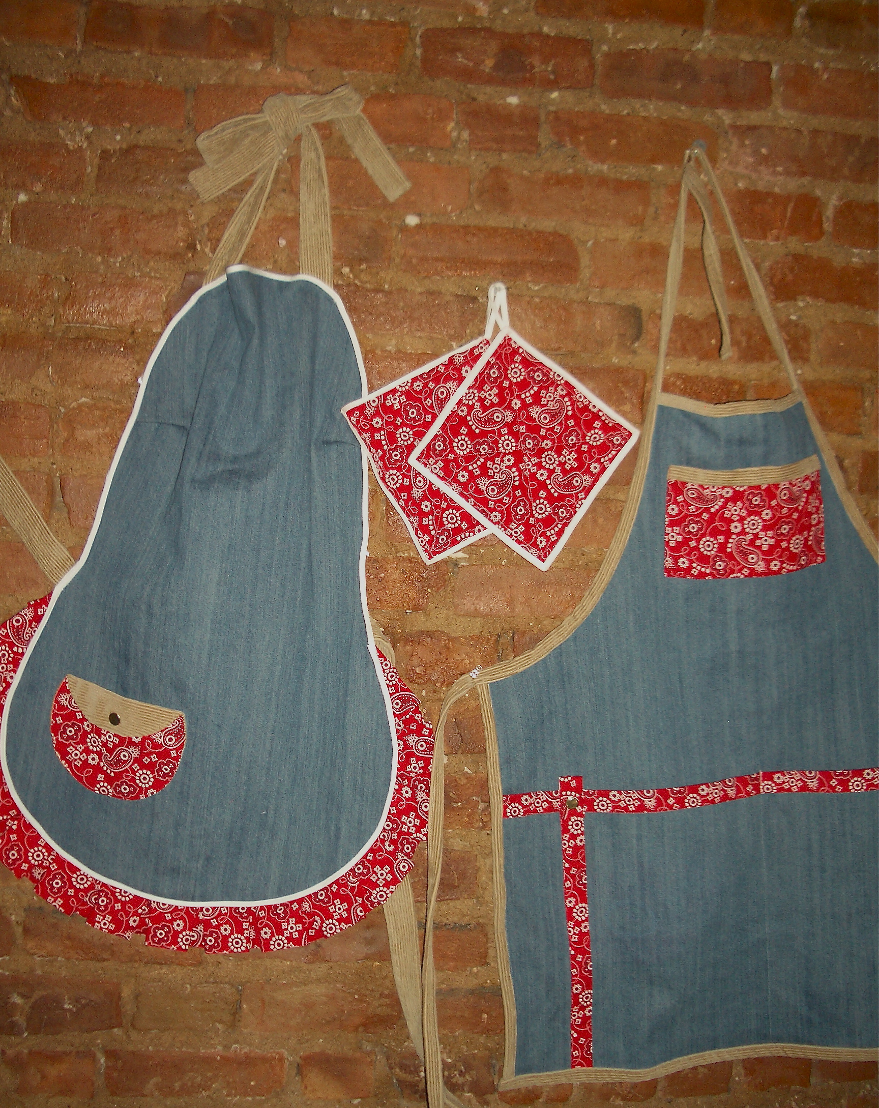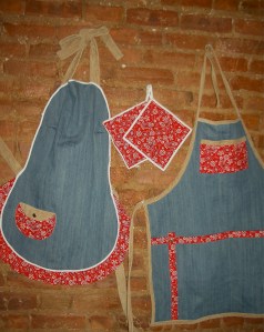 Cute and comfortable for Colorado.  These “His” and “Hers” aprons are carefully crafted from corduroy, denim and bandanna.