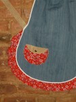 “Her” apron is trimmed in white with bandanna ruffle and corduroy ties.  Her pocket is a mix of corduroy and bandanna.  “His” apron is trimmed in corduroy with a bandanna-corduroy upper pocket.  Four deep pockets trimmed in bandanna provide excellent space for kitchen tools.